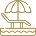 Sunbeds for lounging and shaded areas